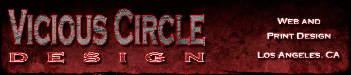 Welcome to Vicious Circle Design. Founded in 2005, VCD is your one-stop solution for anything Web, Print, or Graphic Design related. We specialize in (but are most definitely not limited to ) working with musicians, bands, and artists of all genres. Not a band? No problem. We can tailor any site to your specific needs. Sites can be heavily graphics oriented, or simple text content based sites heavily utilizing CSS. Whatever your needs, we can bring them to life, and for a fraction of the cost that you might expect.